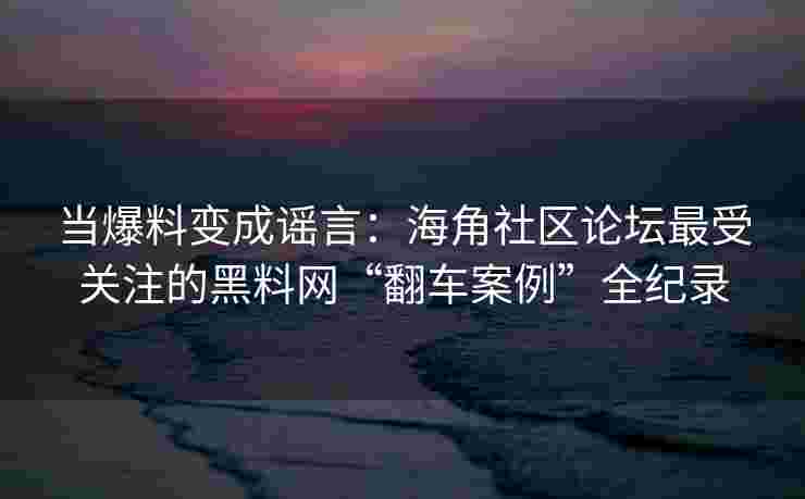 近年来,海角社区论坛一直是网络热议的焦点之一,尤其是在其“黑料网”版块中,各种劲爆的爆料新闻层出不穷。虽然该版块吸引了大量网友的关注,但也由于种种原因,频繁发生了所谓的“翻车”事件... 近年来,海角社区论坛一直是网络热议的焦点之一,尤其是在其“黑料网”版块中,各种劲爆的爆料新闻层出不穷。虽然该版块吸引了大量网友的关注,但也由于种种原因,频繁发生了所谓的“翻车”事件,爆料内容的真伪被广泛质疑,甚至导致了许多原本无辜的人和企业遭受了巨大的名誉损害。本文将通过几个典型的翻车案例,深度剖析网络爆料背后的隐患以及舆论的暴力。