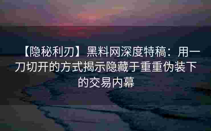 黑料网,作为一个深入挖掘和曝光交易内幕的平台,一直以来都以其犀利的视角和直击要害的内容,吸引了大量关注。它的独特之处在于,通过“隐秘利刃”一刀切开的方式,揭示了重重伪装下的真相。今天,我们将走进黑料网的深度特稿,带你一探那些被遮掩在光鲜外表下的交易真相。