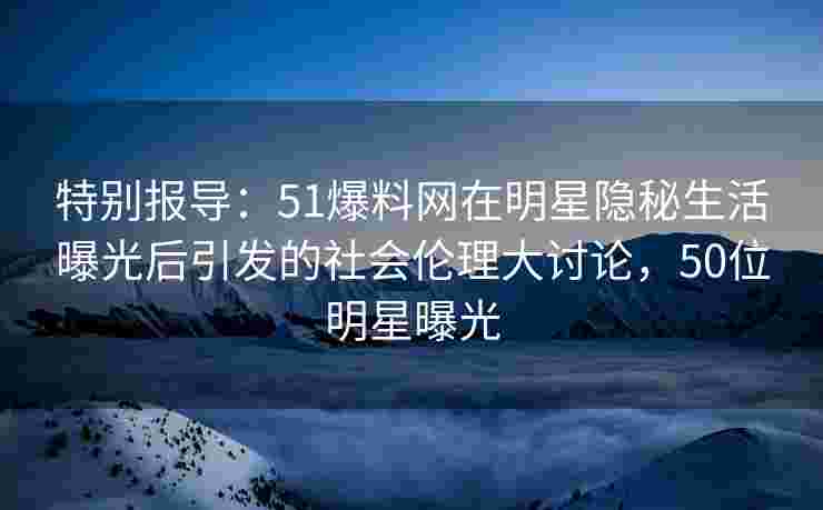 随着社交媒体的迅速发展,信息的传播方式发生了翻天覆地的变化,而这也带来了不少的社会讨论。最近,一则爆炸性的新闻震动了整个娱乐圈——“51爆料网”通过一系列隐秘的资料曝光,揭开了多位... 随着社交媒体的迅速发展,信息的传播方式发生了翻天覆地的变化,而这也带来了不少的社会讨论。最近,一则爆炸性的新闻震动了整个娱乐圈——“51爆料网”通过一系列隐秘的资料曝光,揭开了多位明星生活中的隐秘面纱。明星作为公众人物,本应享有与普通人一样的隐私权,但51爆料网的这一系列操作却令大众对明星隐私问题展开了激烈的讨论。