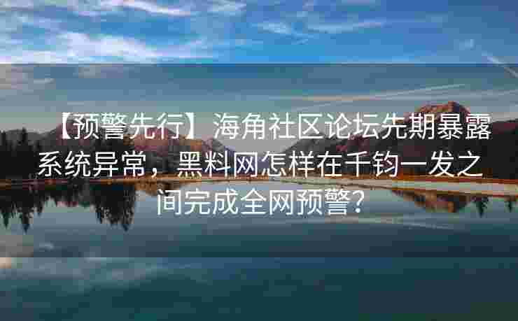 【预警先行】海角社区论坛先期暴露系统异常,黑料网怎样在千钧一发之间完成全网预警?